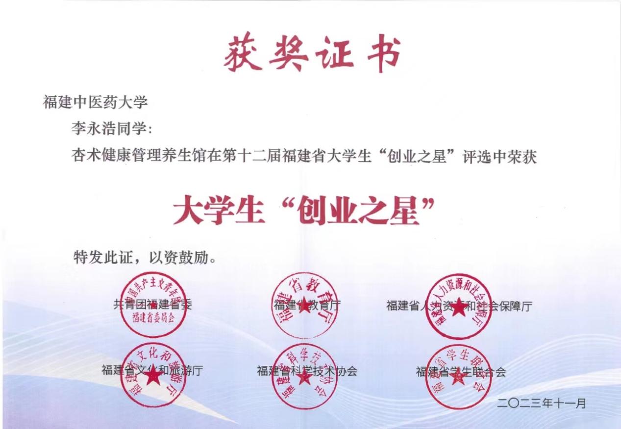 2023年11月4日-5日,第十二届福建省大学生“创业之星”评选终审答辩在闽江学院举行。全省高校的优秀创业项目齐聚闽江学院一决高下。中西医结合研究院2023级研究生李永浩荣获大学生“创业之星”称号。中西医结合研究院将持续挖掘并培养创业项目,引导学生保持热情与干劲,培养创业精神,再创佳绩。
