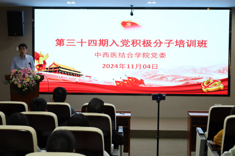 陈晓鹏书记做开班动员讲话,他深刻阐述了入党积极分子培训的重要意义,强调本次培训是深入贯彻中央“全面从严治党”战略部署,落实“控制总量、优化结构、提高质量、发挥作用”党员发展方针的重要举措。陈书记强调要积极响应习近平总书记在全国教育大会上的号召,坚持不懈地用新时代中国特色社会主义思想武装头脑、指导实践,要深刻领会党的二十大报告指出的“十个明确”、“十四个坚持”、“十三个方面成就”,以及党的二十届三中全会进一步擘画以中国式现代化全面推进中华民族伟大复兴的战略举措,推动理论学习往深里走、往实里走、往心里走。